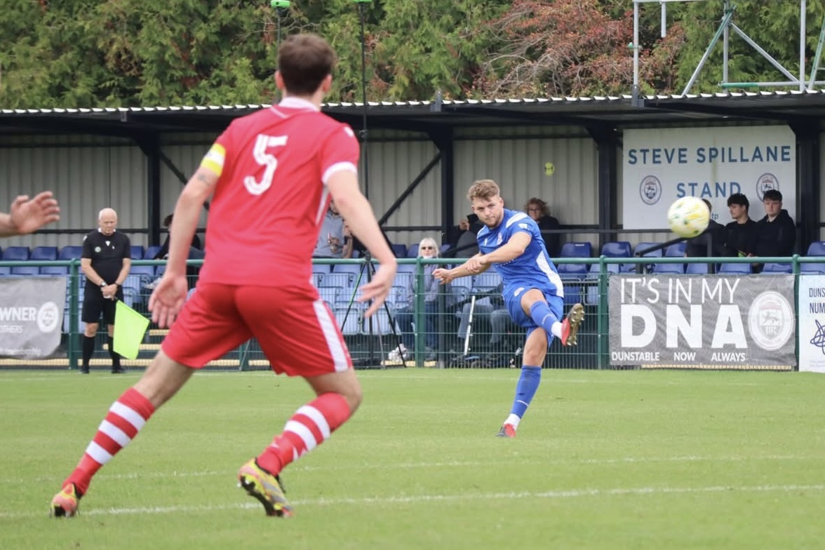 After the break Lewis Smith hit a superb free kick over the wall from twenty yards into the top corner to extend Dunstable’s lead.